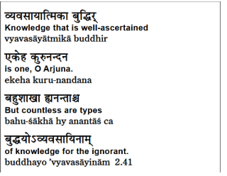 So this buddhi, the spiritual wisdom, which is vyavasāyātmikā, whose nature is vyavasāya. Vyavasāya is discernment, ascertainment. So this wisdom, this understanding, which is vyavasāyātmikā, which is well ascertained—eka iha, kurunandana.